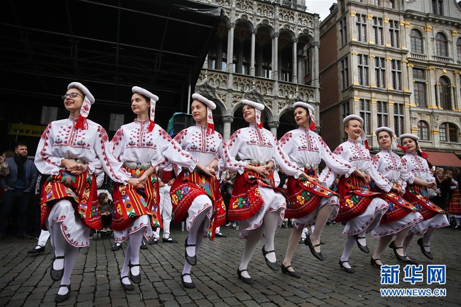 4月28日,在比利時(shí)布魯塞爾大廣場(chǎng),演員表演保加利亞的民族舞蹈。 當(dāng)日,來(lái)自歐洲多個(gè)國(guó)家的表演者在比利時(shí)布魯塞爾大廣場(chǎng)載歌載舞,慶祝為期五天的2019年巴爾干文化藝術(shù)節(jié)圓滿落幕。該文化藝術(shù)節(jié)旨在用音樂(lè)、舞蹈、文學(xué)、街頭藝術(shù)等方式向公眾展現(xiàn)東南歐巴爾干半島地區(qū)的民族文化風(fēng)情。 新華社記者鄭煥松攝