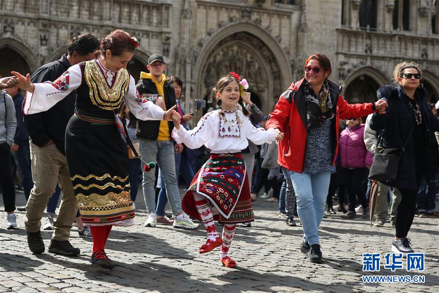 4月28日,在比利時布魯塞爾大廣場,表演者與游客一同跳舞。 當日,來自歐洲多個國家的表演者在比利時布魯塞爾大廣場載歌載舞,慶祝為期五天的2019年巴爾干文化藝術(shù)節(jié)圓滿落幕。該文化藝術(shù)節(jié)旨在用音樂、舞蹈、文學、街頭藝術(shù)等方式向公眾展現(xiàn)東南歐巴爾干半島地區(qū)的民族文化風情。 新華社記者鄭煥松攝