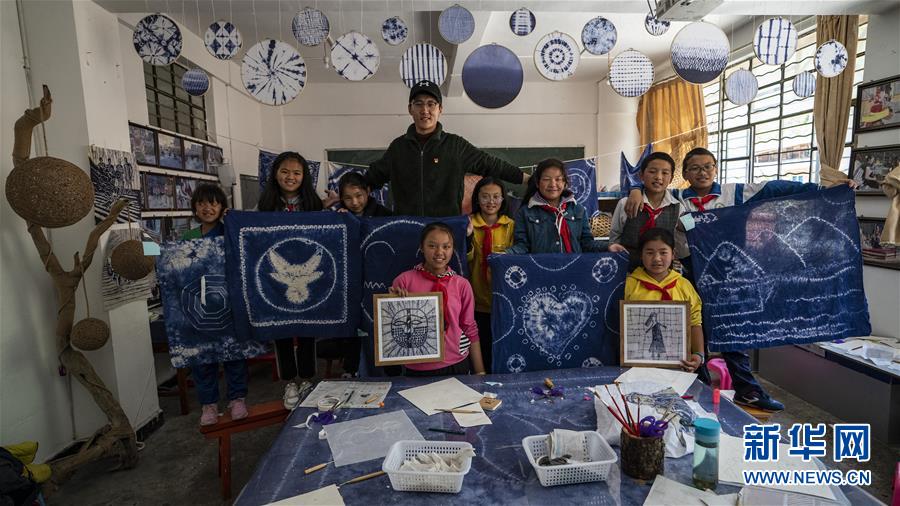 來(lái)自云南大學(xué)藝術(shù)學(xué)院的學(xué)生馬國(guó)賢(后排左四)在獨(dú)龍江中心學(xué)校支教,他利用課余時(shí)間教孩子們用扎染和蠟染的方法展現(xiàn)各自心目中的家鄉(xiāng)(4月25日攝)。 70年,在人類歷史長(zhǎng)河中不過(guò)彈指一瞬。但對(duì)獨(dú)龍族同胞來(lái)說(shuō),新中國(guó)的70年,他們仿佛進(jìn)入了時(shí)空穿梭隧道,滄桑巨變,千古未有。 他們告別苦難,迎來(lái)陽(yáng)光。他們告別封閉,走向開(kāi)放。他們告別原始落后,擁抱現(xiàn)代文明。最近,他們宣告整族脫貧,實(shí)現(xiàn)“千年一躍”。 新華社記者 江文耀 攝