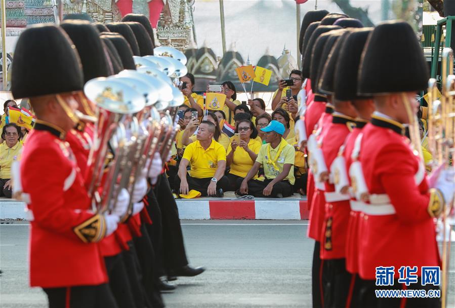 5月5日,儀仗隊(duì)在曼谷大王宮附近舉行的泰國(guó)國(guó)王加冕典禮巡游上列隊(duì)前進(jìn)。 新華社記者 張可任 攝