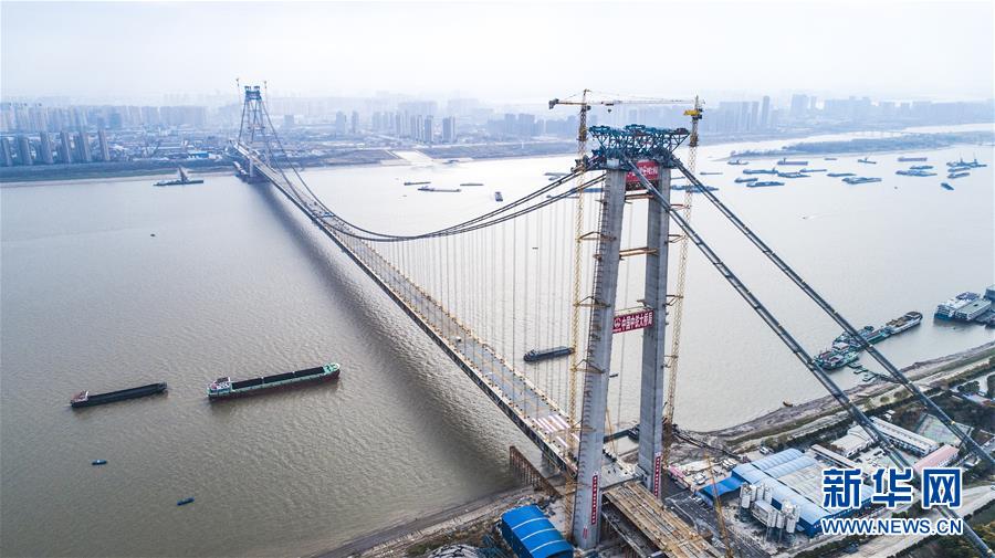當日,隨著最后一節(jié)鋼梁吊裝到位,由中鐵大橋院設(shè)計、中鐵大橋局施工的武漢楊泗港長江大橋順利合龍,標志著這座世界最大跨度雙層公路懸索橋主體工程完工,進入橋面鋪裝階段。 武漢楊泗港長江大橋是武漢市內(nèi)建設(shè)的第十座長江大橋,也是長江上首座雙層公路大橋。 新華社記者 肖藝九 攝