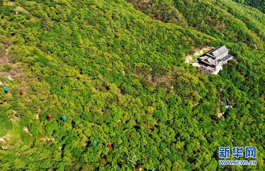 一處建筑坐落在盤山風(fēng)景名勝區(qū)的森林中(5月2日無人機拍攝)。新華社記者 岳月偉 攝
