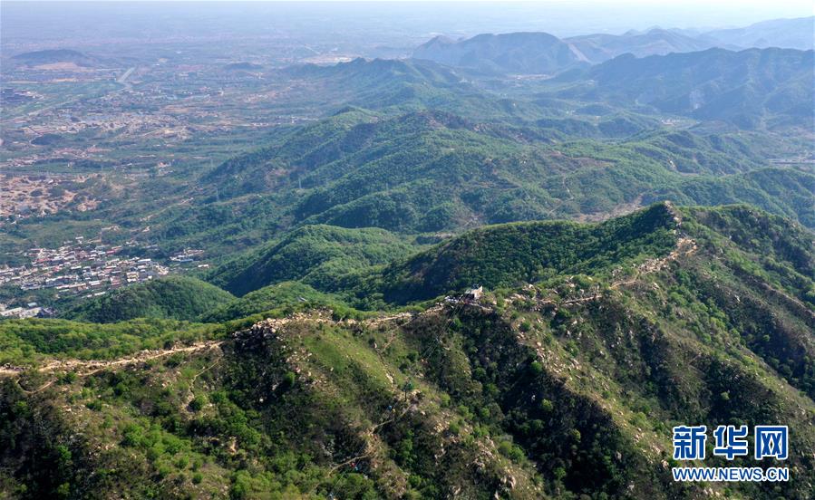 這是5月2日拍攝的盤山風景名勝區(qū)內(nèi)的群山景觀(無人機拍攝)。新華社記者 岳月偉 攝