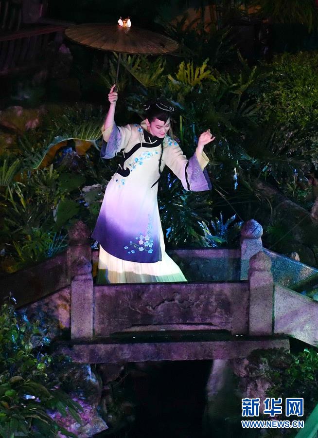 5月5日,演員在福州三坊七巷的水榭戲臺(tái)表演歌舞《煙雨坊巷》。 福州三坊七巷為國(guó)內(nèi)現(xiàn)存規(guī)模較大、保護(hù)較為完整的歷史文化名街區(qū),是中國(guó)十大歷史文化名街之一。位于三坊七巷內(nèi)的水榭戲臺(tái)經(jīng)常舉辦傳統(tǒng)文化演出吸引游客慕名前來(lái)觀賞。 新華社記者 林善傳 攝