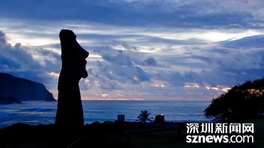 復(fù)活節(jié)島上最著名、最神秘的歷史文明遺跡是巨大的摩艾石像。李仁奇 攝