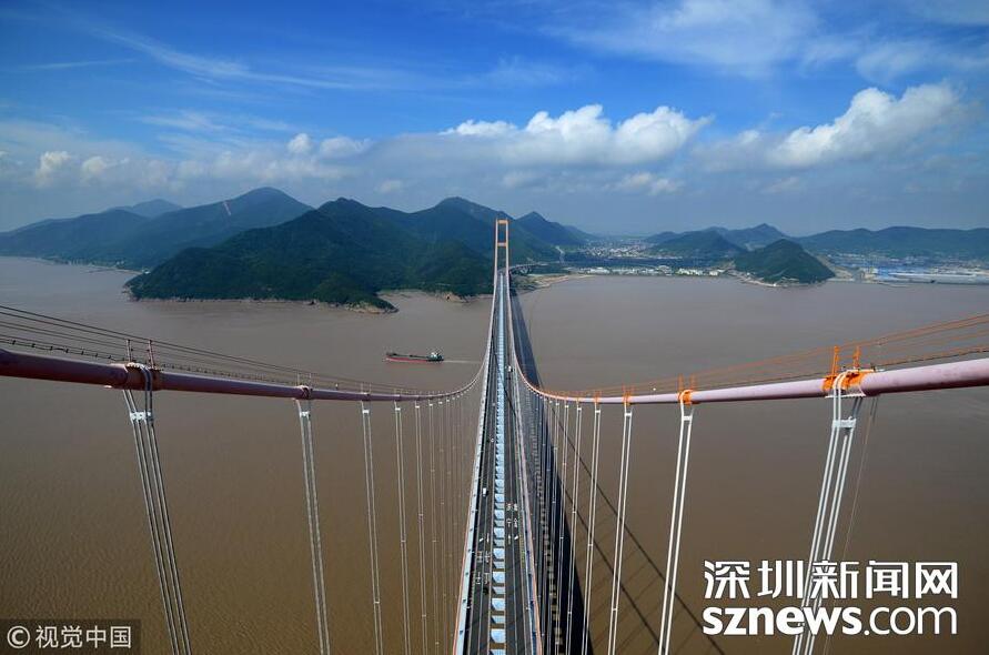 【跨度最大的懸索橋——西堠門大橋】西堠門大橋跨徑1650米,是連接舟山本島與寧波的舟山連島工程五座跨海大橋中技術要求最高的特大型跨海橋梁。西堠門大橋工程完工后使舟山交通納入長江三角洲的高速公路網(wǎng)絡,有利于舟山港口資源的開發(fā),有力推動了寧波——舟山港口一體化進程,在環(huán)杭州灣地區(qū)、長三角地區(qū)經(jīng)濟發(fā)展中發(fā)揮著重要作用。