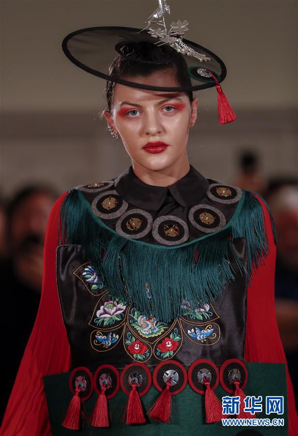5月8日,一名模特在英國(guó)倫敦走秀。 由浙江省文化和旅游廳舉辦的浙江傳統(tǒng)工藝創(chuàng)新展8日在倫敦開(kāi)幕。為期4天的展覽是第五屆倫敦手工藝周的重要活動(dòng)之一。 新華社記者 韓巖 攝