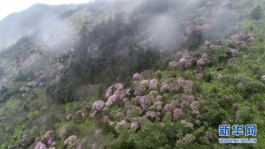 神農架神農頂景區(qū)盛開的高山杜鵑(5月13日無人機拍攝)。 新華社記者 杜華舉 攝