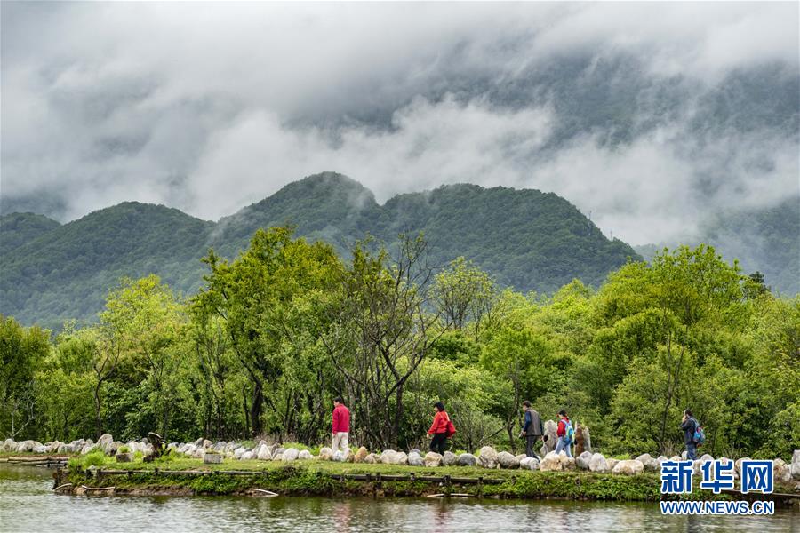 游客在神農架國家公園大九湖游覽(2018年5月18日攝)。 新華社記者 杜華舉 攝