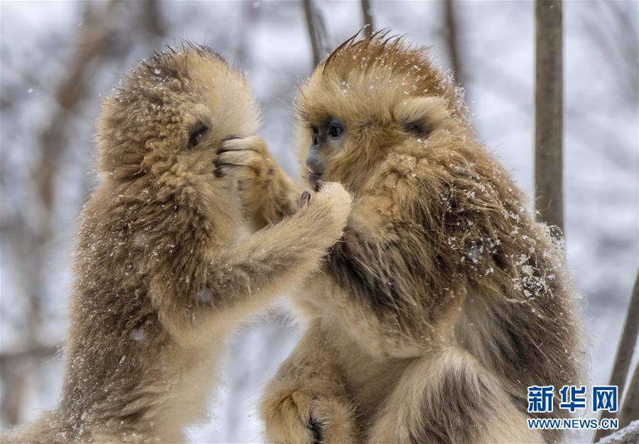 在神農架國家公園大龍?zhí)杜臄z的金絲猴(2017年1月10日攝)。 新華社記者 杜華舉 攝
