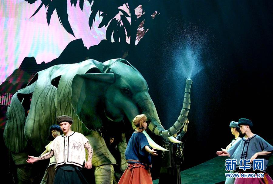 5月15日在上海美琪大戲院拍攝的新版大型人偶舞臺劇《最后一頭戰(zhàn)象》劇照。 當日,作為第12屆中國藝術節(jié)的參演劇目,大型人偶舞臺劇《最后一頭戰(zhàn)象》在經過4次硬件技術升級和故事修改后亮相上海美琪大戲院。 新華社記者 任瓏 攝