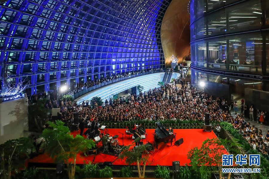5月19日凌晨,觀眾在國家大劇院公共空間欣賞小野麗莎“午夜玫瑰”爵士樂專場音樂會(huì)。 5月18日晚,作為亞洲文化展演活動(dòng)的演出之一,著名爵士歌手小野麗莎攜樂團(tuán)首次登臺國家大劇院,亮相“午夜玫瑰”爵士樂專場音樂會(huì)。 新華社記者 張玉薇 攝