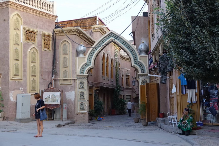 兩千多年前,這里是古疏勒國(guó)王宮所在地,從500多年前建立艾提尕爾清真寺起始,吾斯塘博依街逐漸成為一條喧鬧繁華的主街,匯聚了當(dāng)?shù)刈畛錾哪芄で山常敲逼鋵?shí)的手工藝品一條街。李仁奇 攝
