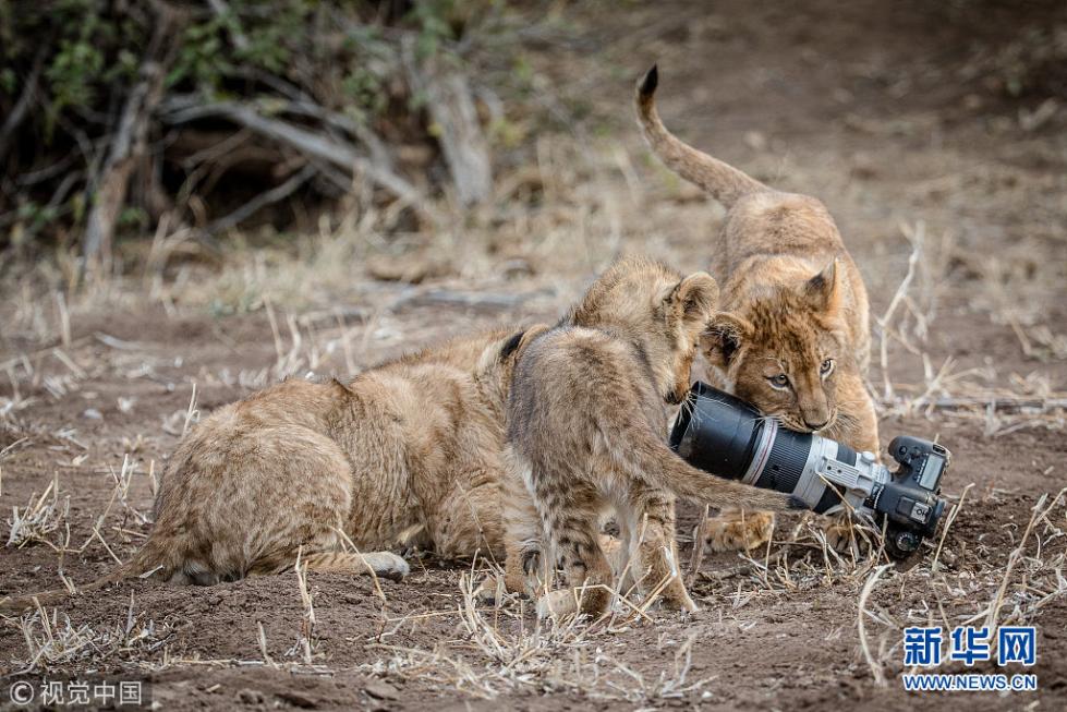 近日,非洲博茨瓦納馬沙圖野生動物保護(hù)區(qū)內(nèi)一頭獅子叼起攝影師掉落在地上的相機(jī),之后還將相機(jī)交給小獅子們玩耍,看起來十分好奇,而攝影師非常無奈?,F(xiàn)年57歲的叢林探險(xiǎn)家Barbara Jensen Vorster在一輛越野車上為馬沙圖野生動物保護(hù)區(qū)的獅群拍照時(shí),相機(jī)不小心掉到了地上。砰的一聲響驚動了母獅子,它向攝影師方向移動,迫使探險(xiǎn)隊(duì)撤退。(圖片來源:視覺中國)