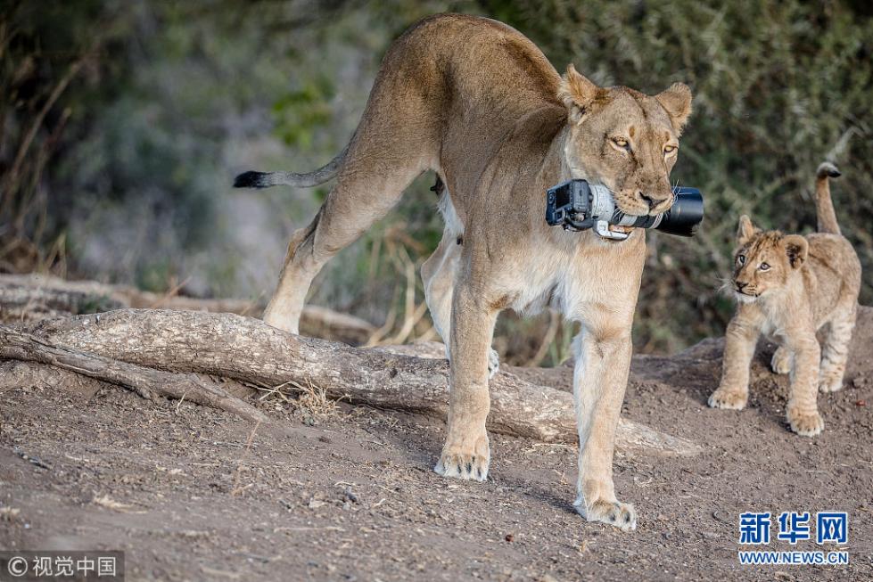 近日,非洲博茨瓦納馬沙圖野生動(dòng)物保護(hù)區(qū)內(nèi)一頭獅子叼起攝影師掉落在地上的相機(jī),之后還將相機(jī)交給小獅子們玩耍,看起來十分好奇,而攝影師非常無奈。現(xiàn)年57歲的叢林探險(xiǎn)家Barbara Jensen Vorster在一輛越野車上為馬沙圖野生動(dòng)物保護(hù)區(qū)的獅群拍照時(shí),相機(jī)不小心掉到了地上。砰的一聲響驚動(dòng)了母獅子,它向攝影師方向移動(dòng),迫使探險(xiǎn)隊(duì)撤退。(圖片來源:視覺中國(guó))