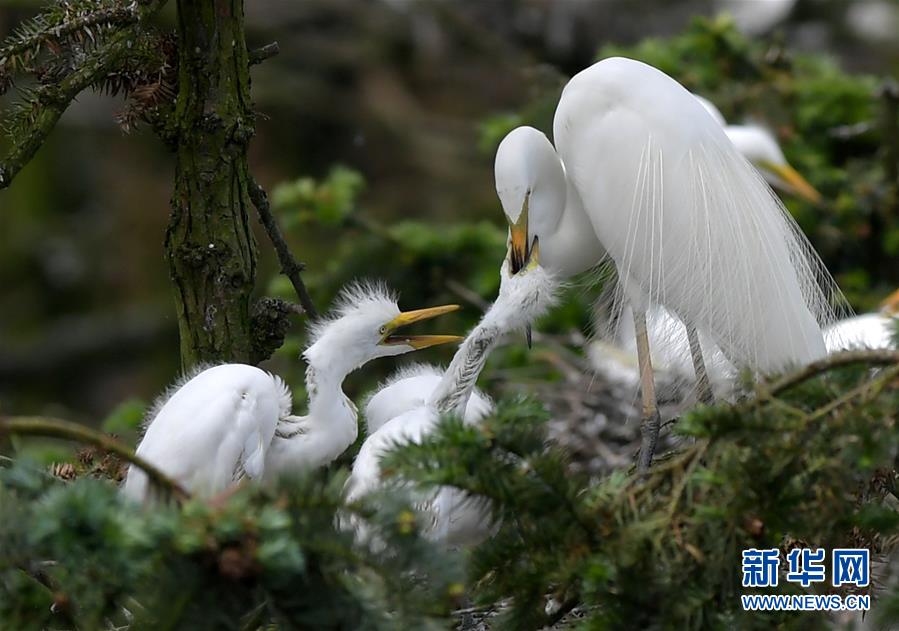 在江西省南昌市新建區(qū)象山森林公園內,白鷺和自己的雛鳥在一起(5月21日攝)。 近日,在江西省南昌市新建區(qū)象山森林公園內,已安家筑巢的大批鷺鳥陸續(xù)孵化出了后代。象山森林公園有著“鷺鳥王國”的美譽,生態(tài)環(huán)境良好,每年都會吸引白鷺、蒼鷺、夜鷺等種類的鷺鳥飛抵棲息和繁衍后代。 新華社記者 彭昭之 攝