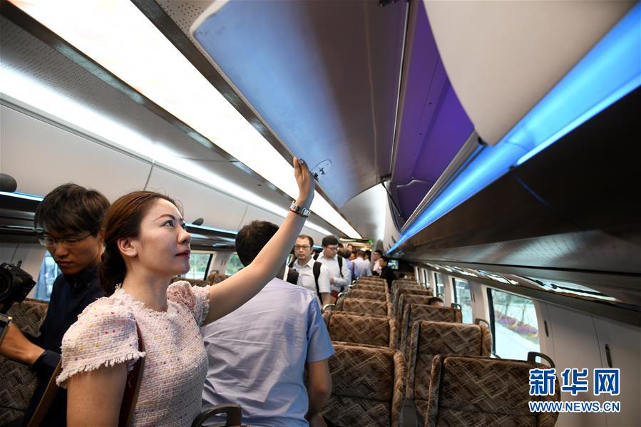 5月23日,參觀人員在時速600公里高速磁浮試驗樣車上參觀。新華社記者李紫恒 攝