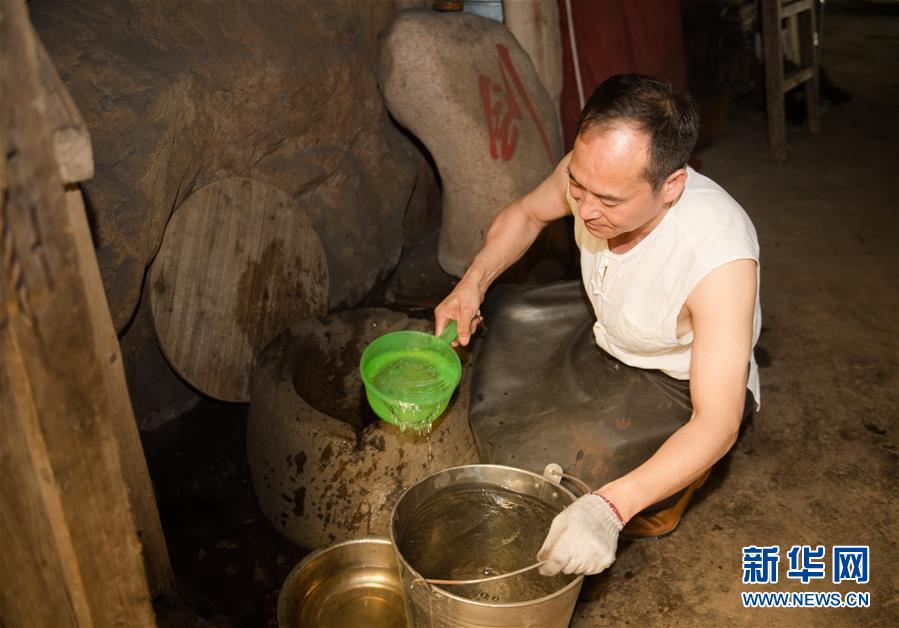 5月21日,鄭國榮在“古越劍鋪”打井水準備為寶劍淬火。他說淬火用的水很重要,正是看中了這口井他才把工作室設(shè)在這里。 新華社記者 翁忻旸 攝