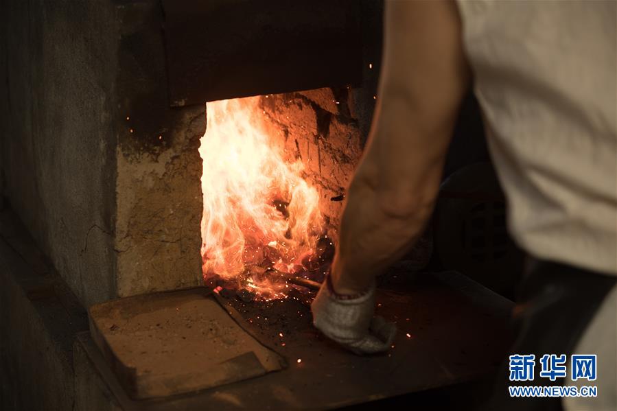 5月21日,鄭國(guó)榮在“古越劍鋪”煉制坯料。 新華社記者 翁忻旸 攝