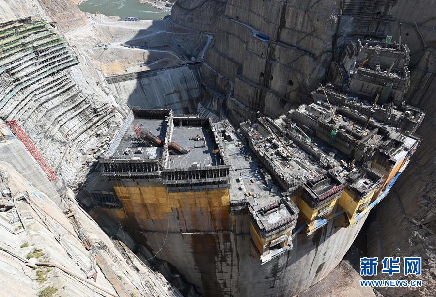 這是用無人機拍攝的建設(shè)中的烏東德水電站全景(5月30日攝)。 新華社記者陳曄華攝