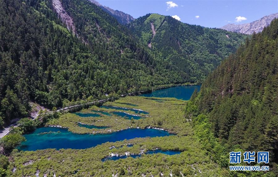這是九寨溝景區(qū)內(nèi)一景(6月5日無人機拍攝)。新華社記者薛玉斌攝