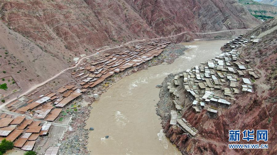 這是位于瀾滄江畔的西藏芒康縣納西民族鄉(xiāng)加達(dá)村的鹽田(6月4日無人機拍攝)。新華社記者晉美多吉攝