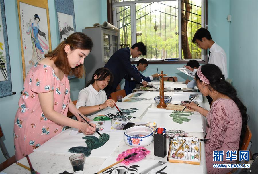 6月10日,在塔吉克斯坦首都杜尚別,學(xué)生在塔吉克斯坦民族大學(xué)孔子學(xué)院畫畫。 塔吉克斯坦共和國,簡(jiǎn)稱塔吉克斯坦,是位于中亞東南部的內(nèi)陸國家。塔吉克斯坦是多民族國家,全國共有86個(gè)民族,人口約910萬。 新華社記者沙達(dá)提攝