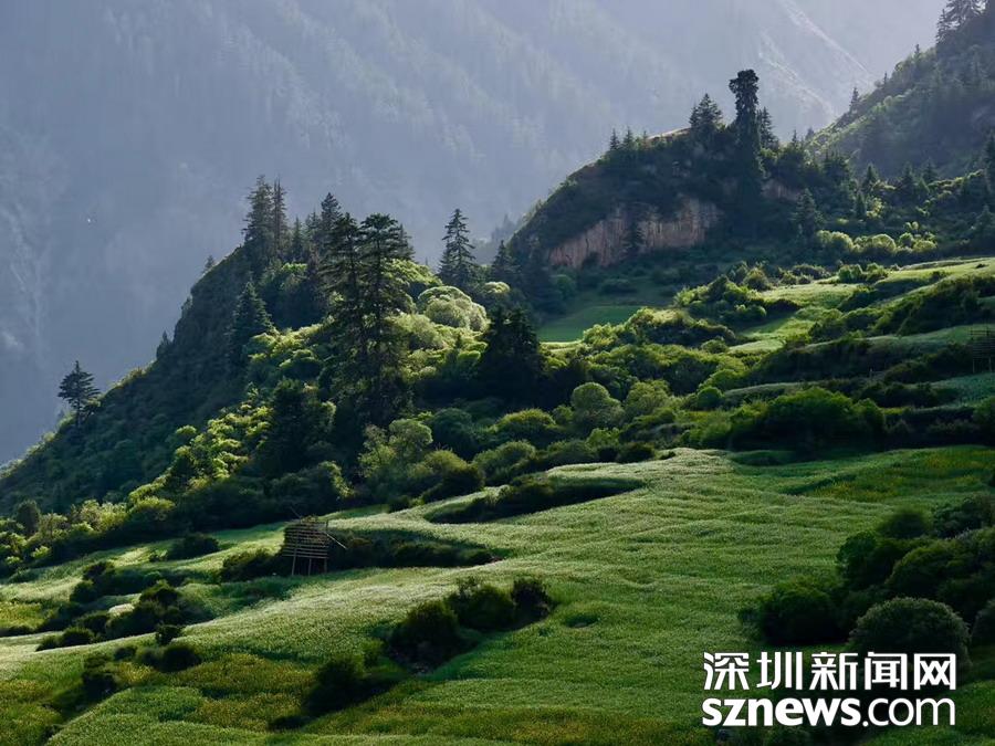 正北是璀璨生輝、巍峨恢宏、雄偉壯觀的迭山主脊光蓋山石峰,另外三面皆是秀峰環(huán)拱,蒼松翠柏郁郁蔥蔥,猶如高峻雄渾、堅(jiān)不可推的城墻,把扎尕那四村一寺圍在城中,其中東哇村和桑拉寺院正巧座落于石城中央。李仁奇攝