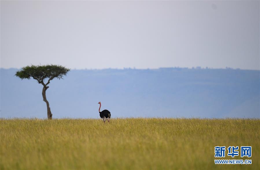 6月18日,在肯尼亞馬賽馬拉國家保護區(qū),一只鴕鳥在覓食。 新華社記者 李琰 攝