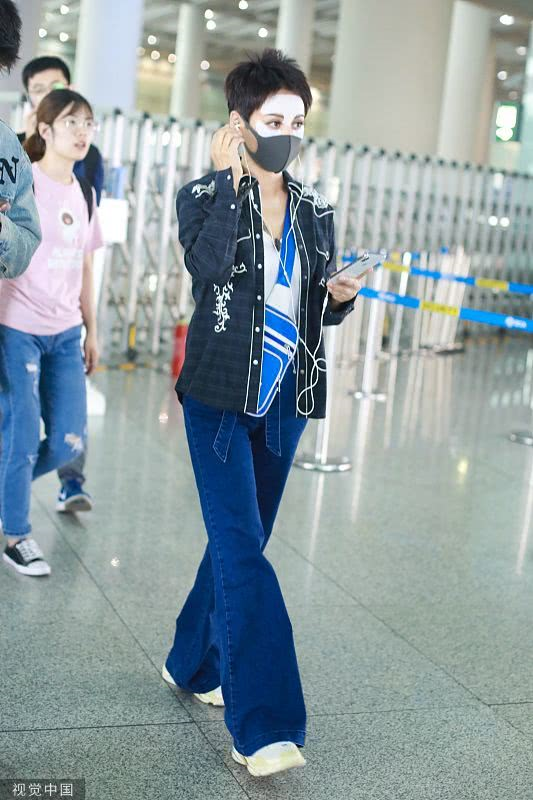 2019年6月19日,北京,寧靜現(xiàn)身機場。她穿敷面膜亮相短發(fā)干練個性灑脫,戴口罩對鏡揮手大方任拍。