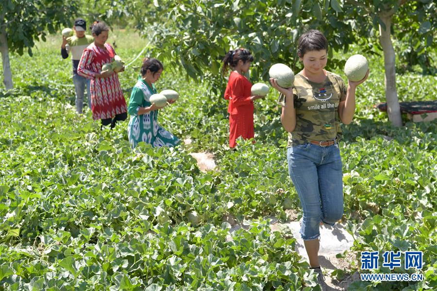 6月23日,新疆喀什地區(qū)巴楚縣的瓜農(nóng)在采摘留香瓜。新華社記者 丁磊 攝