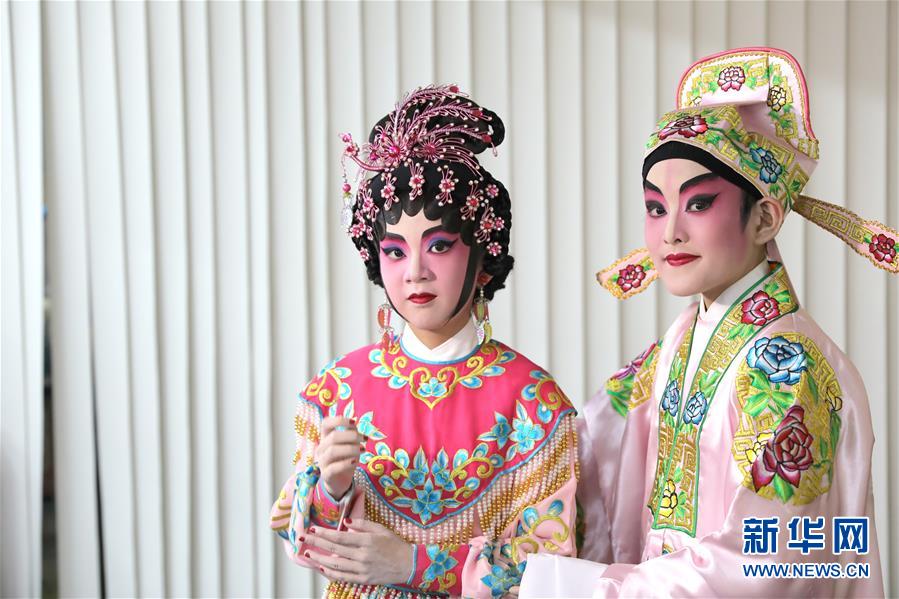 陸瑞徽(左)和利文喆在表演折子戲《艷曲醉周郎》(6月8日攝)。 聲輝粵劇推廣協(xié)會(huì)成立于2003年,是香港重要粵劇藝術(shù)團(tuán)體之一,致力于向青少年推廣粵劇。協(xié)會(huì)目前有兩個(gè)初班,3個(gè)中班,一個(gè)青少年班?;泟∮址Q“廣東大戲”,表演技藝包括“唱做念打”,即唱功、身段、臺(tái)詞、武打,主要流行于廣東、廣西和香港、澳門等地區(qū)。2009年,粵劇被列入聯(lián)合國(guó)教科文組織人類非物質(zhì)文化遺產(chǎn)代表作名錄,今年正逢十周年。 新華社記者 吳曉初 攝