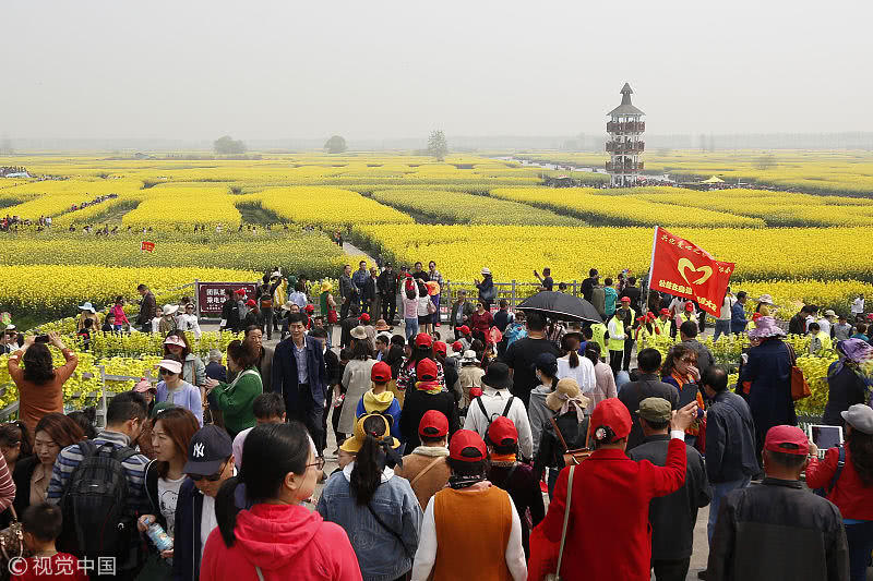 2019年4月7日,江蘇省興化市千垛菜花景區(qū)迎來(lái)旅游高峰期,數(shù)萬(wàn)游客前來(lái)欣賞盛開(kāi)的油菜花,樂(lè)享假日好時(shí)光。