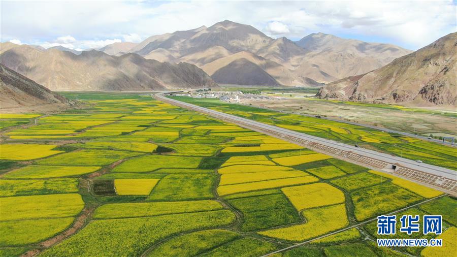 7月2日在拉薩市堆龍德慶區(qū)德慶鄉(xiāng)拍攝的油菜花田(無人機(jī)拍攝)。 近日,西藏各地的油菜花盛開,呈現(xiàn)出生機(jī)勃勃的夏日美景。 新華社記者 晉美多吉 攝