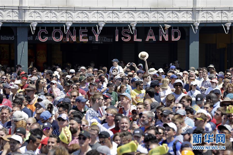 7月4日,在美國(guó)紐約康尼島,人們觀看吃熱狗大賽。 當(dāng)日,美國(guó)紐約康尼島舉行一年一度的吃熱狗大賽。在男子組比賽中,來自加州的喬伊·切斯特納特10分鐘內(nèi)吃下71個(gè)熱狗衛(wèi)冕成功。在女子組比賽中,三木須藤10分鐘內(nèi)吃下31個(gè)熱狗,連續(xù)第六次贏得冠軍。 新華社記者 李木子 攝