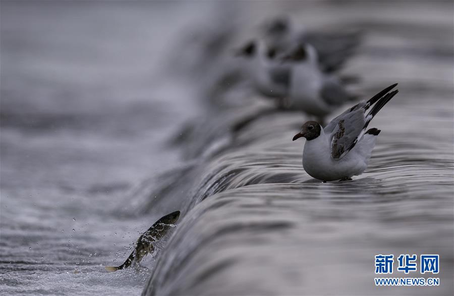 7月6日,在青海省剛察縣沙柳河里,湟魚躍起向上洄游。 新華社記者 費(fèi)茂華攝