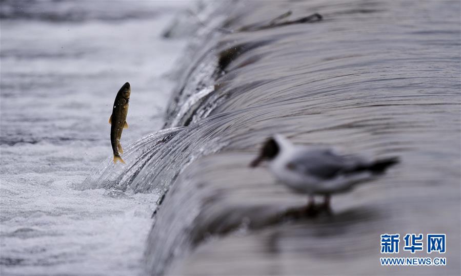 7月6日,在青海省剛察縣沙柳河里,湟魚(yú)在躍起向上洄游。 新華社記者 費(fèi)茂華攝
