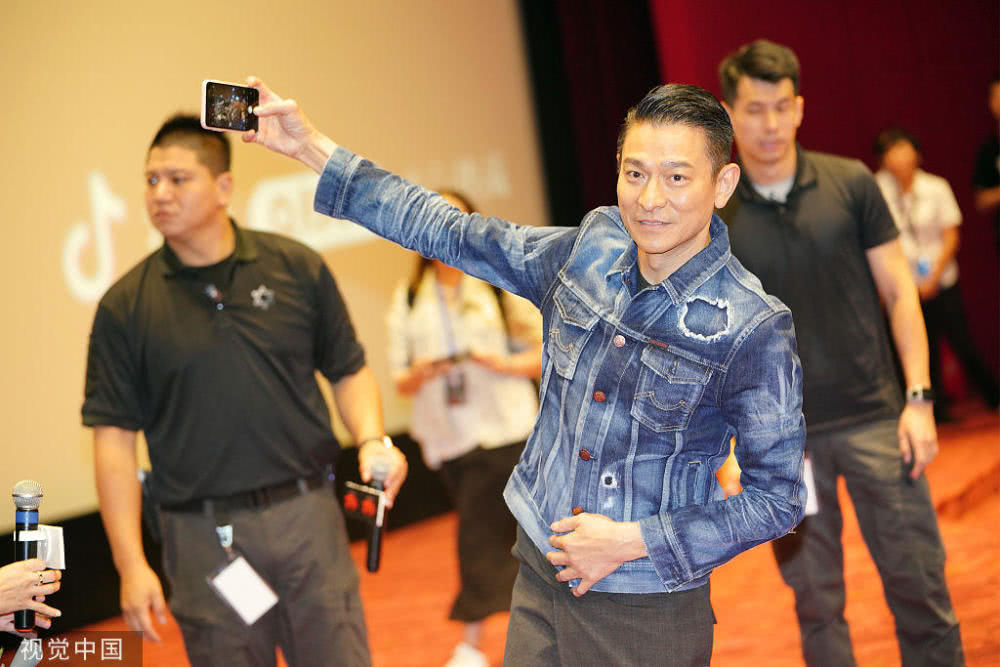 2019年7月10日,上海,劉德華、林嘉欣參加宣傳《掃毒2》。