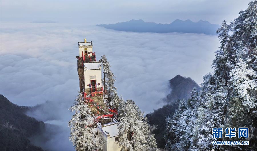 3月3日拍攝的塔云山金頂觀音殿(無人機拍攝)。 新華社記者陶明攝