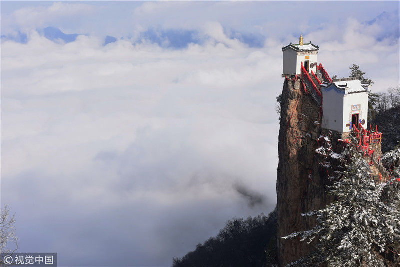 2019年3月3日,陜西商洛,位于鎮(zhèn)安縣的塔云山景區(qū)云海翻騰,宛如仙境。