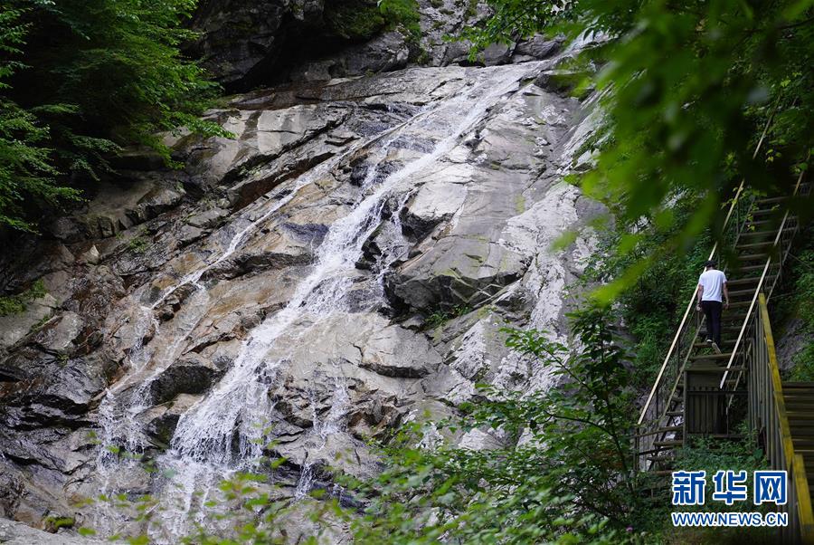 7月10日,游客在太白縣青峰峽景區(qū)游覽。 陜西太白縣青峰峽國(guó)家級(jí)森林公園位于秦嶺主峰太白山北麓,這里青山疊嶂,瀑布穿流,氣候涼爽,年平均氣溫7.6攝氏度,成為炎炎夏日中人們避暑休閑的好去處。 新華社記者 邵瑞 攝