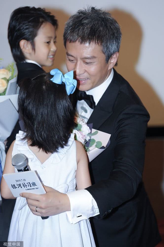 2019年7月11日,上海,鄧超新片《銀河補(bǔ)習(xí)班》上海首映,孫儷帶著等等、小花前來(lái)助陣,現(xiàn)場(chǎng)的鄧超一看就是個(gè)女兒奴,在現(xiàn)場(chǎng)和目光都不離開(kāi)小花,又是親親抱抱,又是單膝跪地安撫,十足疼愛(ài)這位前世小情人。