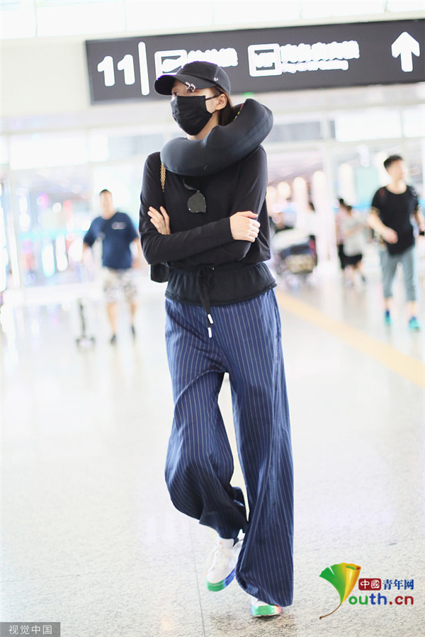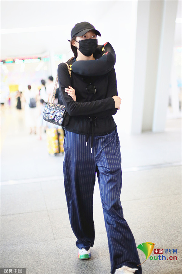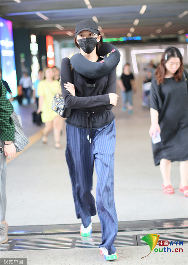 關(guān)曉彤淡定抱臂行走 脖子上掛U型枕毫無(wú)偶像包袱