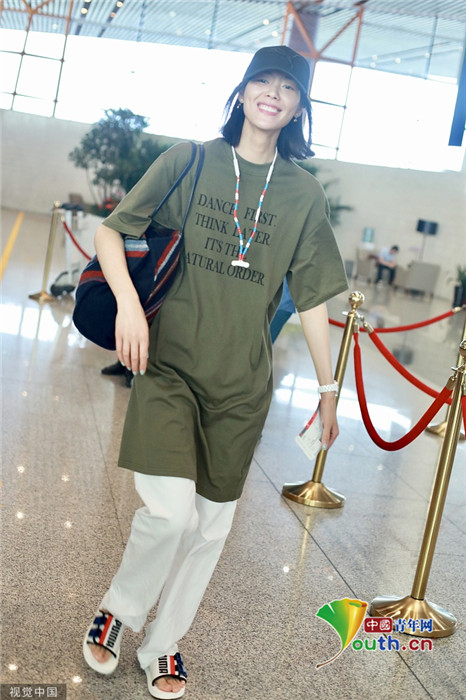 2019年7月23日,北京,劉雯現(xiàn)身機場。她頭戴棒球帽,身穿oversize上衣腳踩拖鞋,走慵懶隨性風(fēng),盡顯超模氣場,露出招牌笑容親切又有感染力。