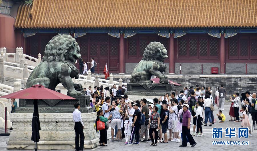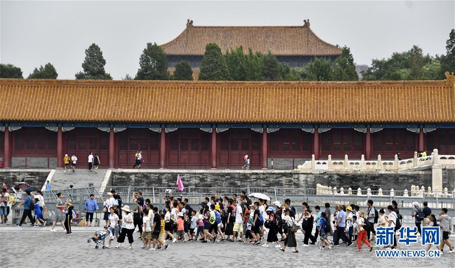 8月3日,游客在故宮參觀。進(jìn)入暑期以來,北京故宮博物院迎來游覽高峰。故宮博物院采取每日游客限流、熱點(diǎn)景區(qū)導(dǎo)流、供水和醫(yī)療保障等措施,確保游客安全。新華社記者李欣攝