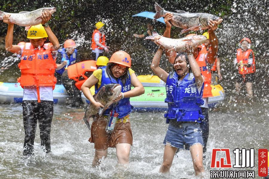 2019年8月2日,廣東清遠,臺風“韋帕”不但帶來風雨,還給游客帶來捕魚之樂。