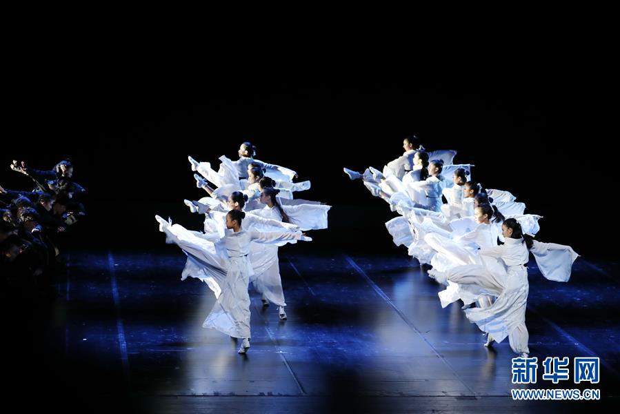 8月7日晚,舞蹈演員們在表演中。 當(dāng)日,“舞出中國風(fēng)”慶祝新中國成立70周年公益展演在上海國際舞蹈中心舉行。舞蹈家黃豆豆攜手30位青年舞者進(jìn)行志愿演出,并與多家藝術(shù)團(tuán)隊(duì)合作,共同呈現(xiàn)了一臺(tái)具有濃郁中國風(fēng)的原創(chuàng)舞專場,為新中國成立70周年獻(xiàn)禮。 新華社記者 劉穎 攝