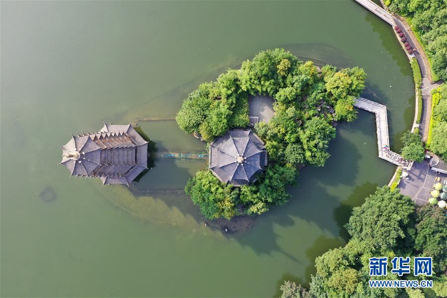桂林市榕湖景觀(7月1日無(wú)人機(jī)拍攝)。 夏日時(shí)節(jié),廣西桂林市區(qū)內(nèi)的榕湖、杉湖、桂湖、木龍湖等地綠樹成蔭、景色迷人。 新華社記者陸波岸攝