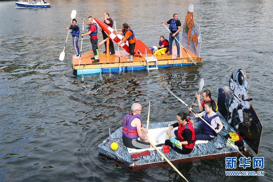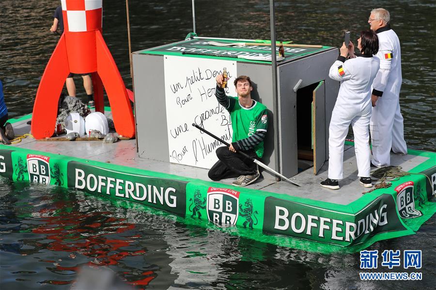 當(dāng)日,一年一度的水上狂歡活動“浴缸劃船節(jié)”在比利時迪南舉行。該活動要求參賽者制造的船上至少帶有一個浴缸,參賽者需完成一千米的水上巡游,最后根據(jù)設(shè)計創(chuàng)意及現(xiàn)場表演而非行進(jìn)速度評選出優(yōu)勝者?!霸「讋澊?jié)”始于1982年,今年的主題是"我們在月球漫步"。 新華社記者 張鋮 攝