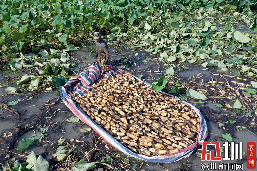 2019年8月13日,江蘇寶應(yīng),時下正值秋藕采收時節(jié),揚(yáng)州寶應(yīng)縣25萬畝蓮藕陸續(xù)開采,藕農(nóng)們抓緊采藕、清洗、包裝、運(yùn)輸,以供應(yīng)市場。據(jù)了解,今年荷藕長勢喜人,價格比往年略有提升,每天有近百名挖藕工活躍在藕田中,每天可采摘1000斤左右荷藕,能獲300元以上收入。
